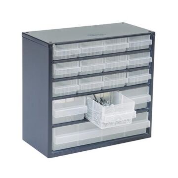 Een handige plek om uw kleine materialen in op te bergen is de Raaco assortimentskast. Deze metalen kast heeft duurzame kunststof laden en is tevens in een XL versie verkrijgbaar. Dit model heeft grotere laden en kan ook met behulp van inzetbakjes in vakken verdeeld worden. De Raaco assortimentskast is bovendien zeer geschikt om aan de muur te bevestigen.